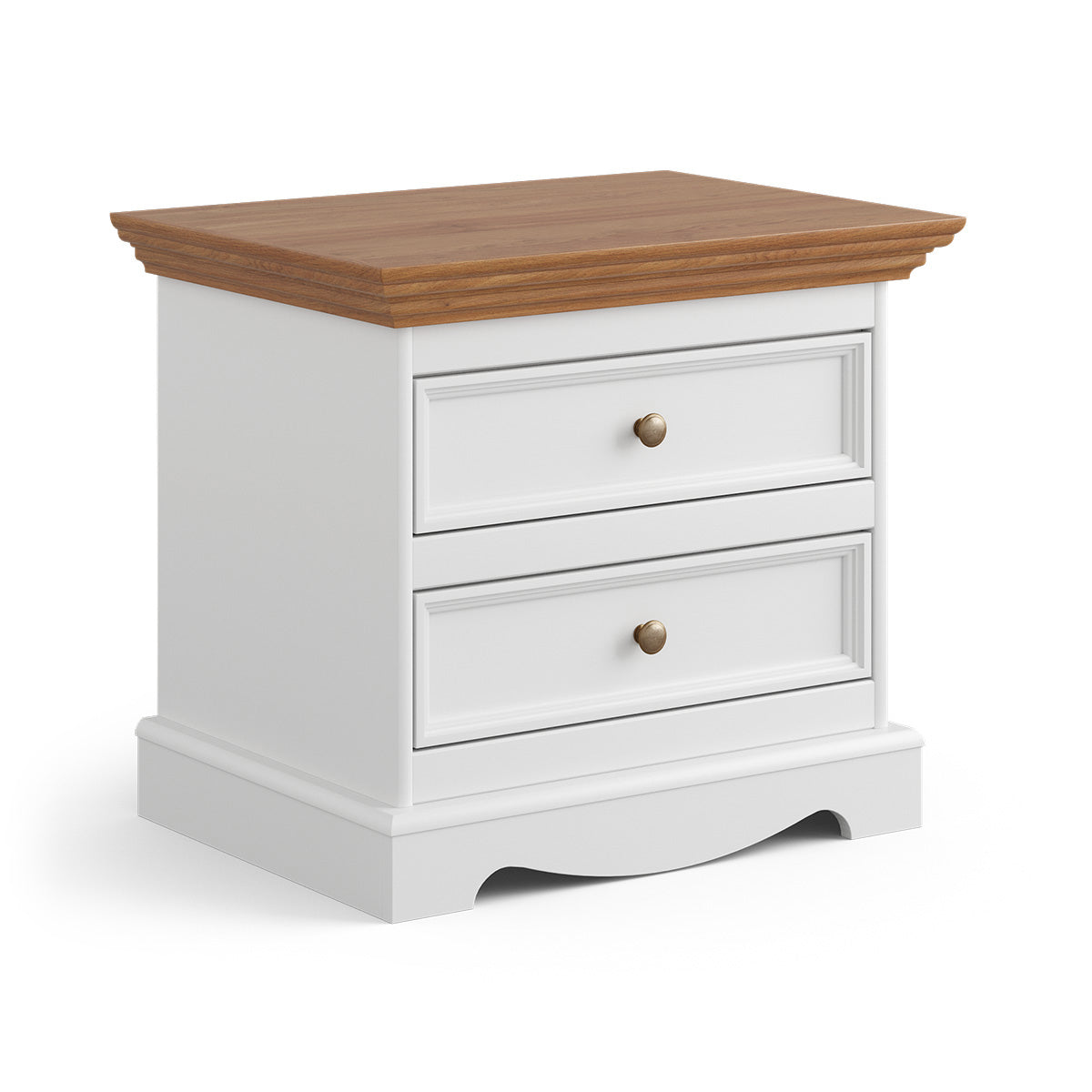 Bologna Elegante Massivholz Nachttisch | Farbe Weiß - Eiche