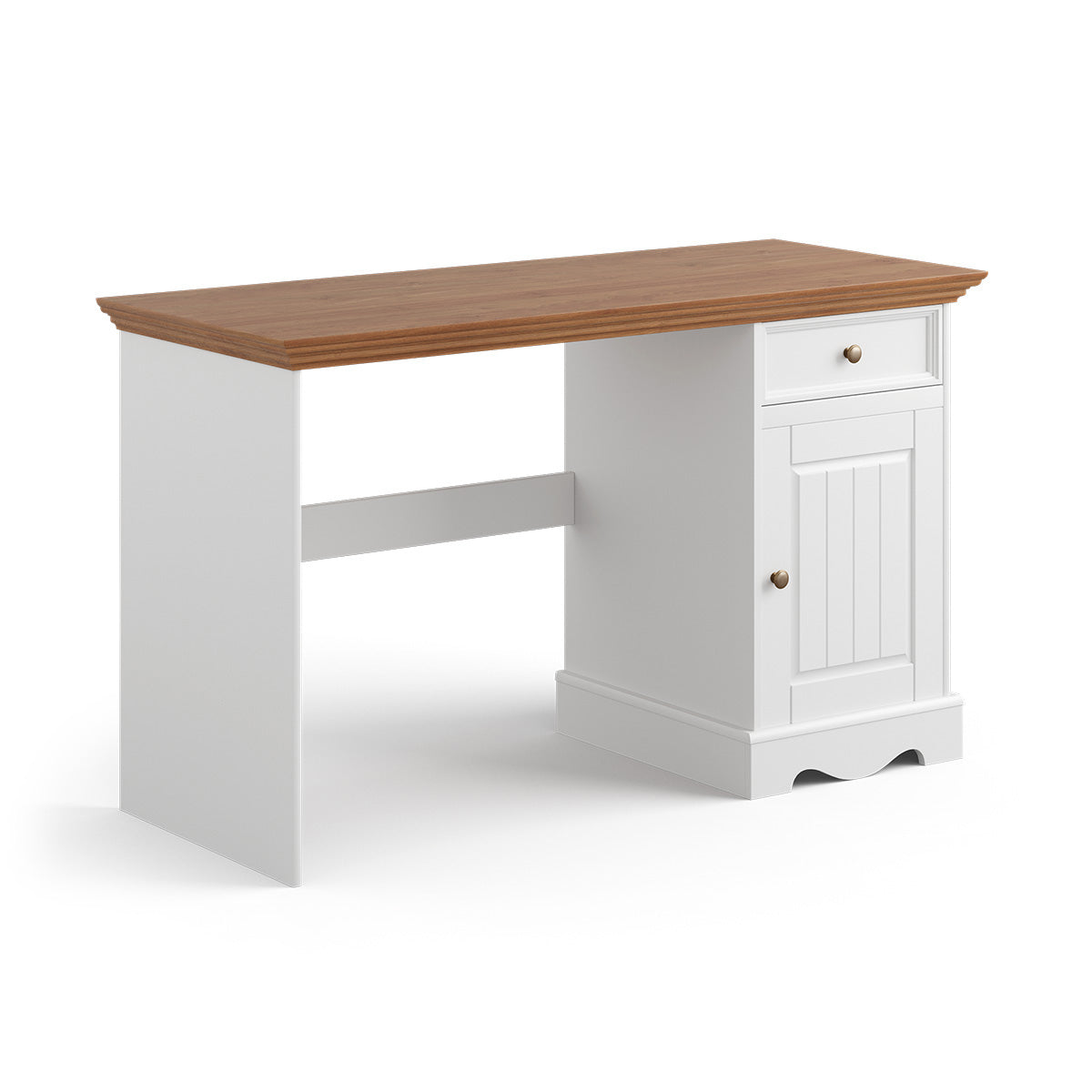 Bologna Elegante Massivholz Kiefer Schreibtisch 1-Türig | Farbe Weiß - Eiche