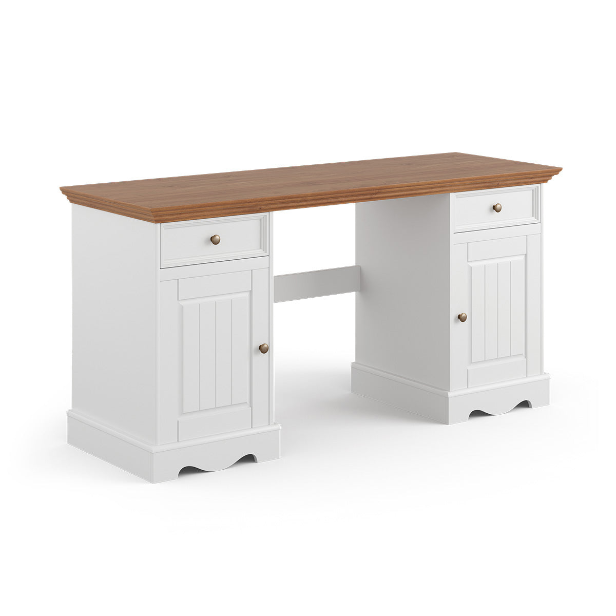 Bologna Elegante Massivholz Kiefer Schreibtisch | Farbe Weiß - Eiche