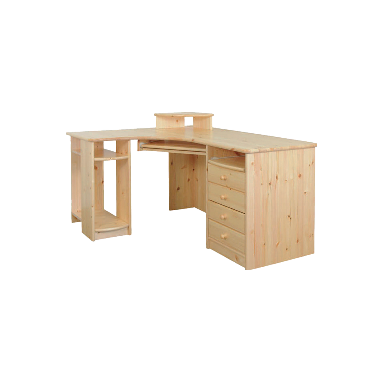 Vanessa Eck-Schreibtisch XL | Tastaturauszug | PC-Halterung | 100% Bio Kiefer Massivholz