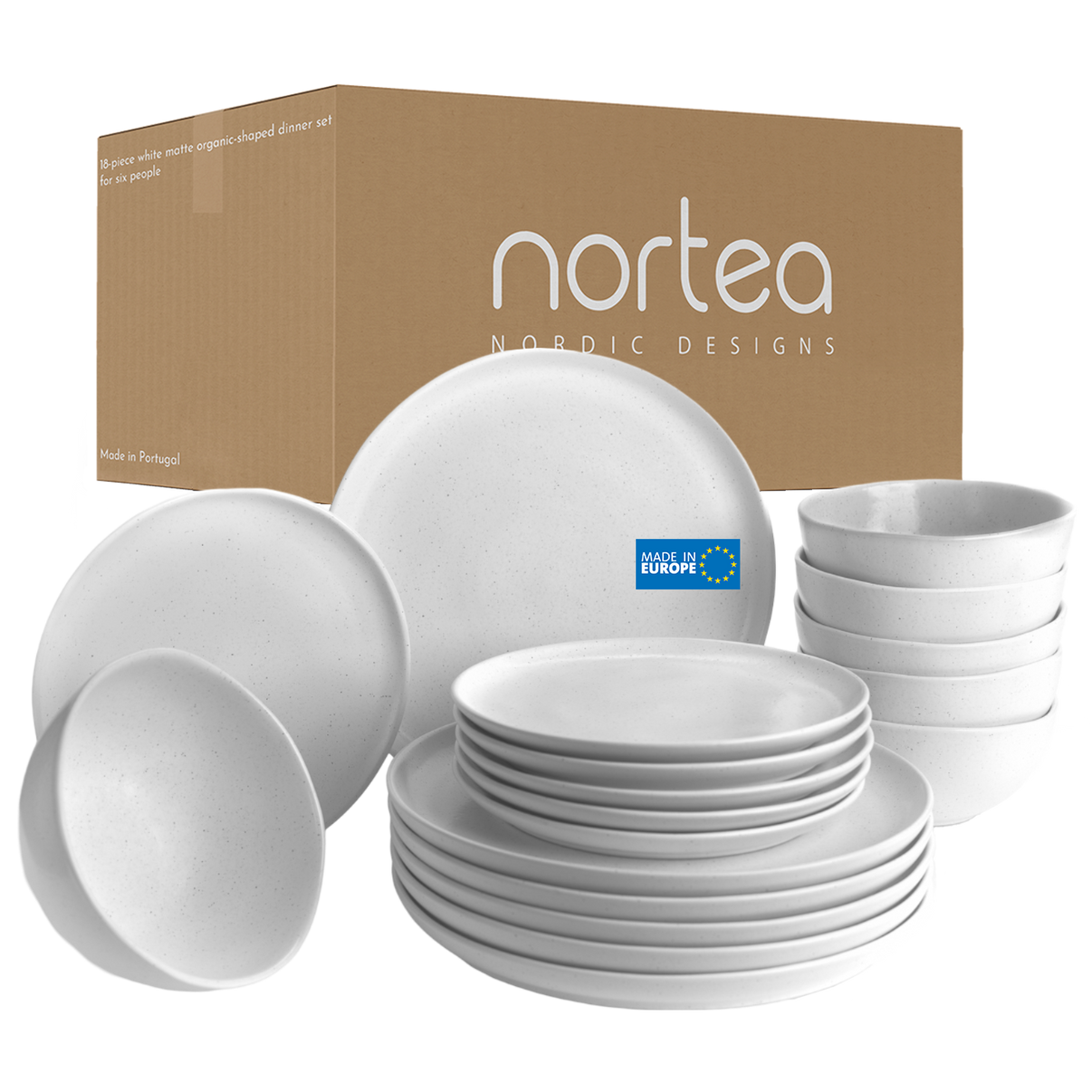 nortea – Nordisches Design Geschirrset weiß matt, für 6 Personen, 18-tlg, mit organischen Formen, nachhaltig hergestellt in Portugal