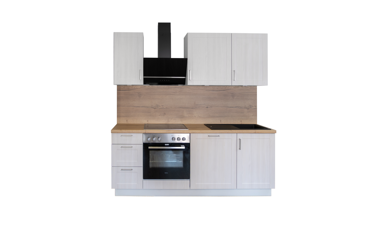 GEBA Landhaus-Küchenzeile – vormontiert mit oder ohne E-Geräten, in drei Größen inklusive Nischenrückwand & LED-Beleuchtung
